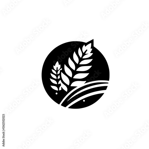 Minimalist Black and White Logo Featuring Wheat Stalks in a Circle, Representing Agriculture and Nature on a Gradient Background