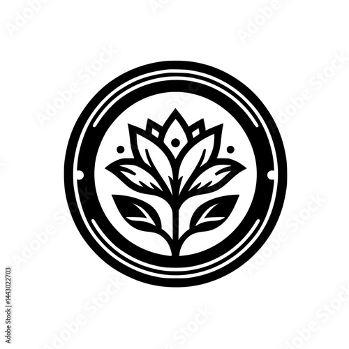 Minimalist Black and White Lotus Flower Emblem Graphic Icon