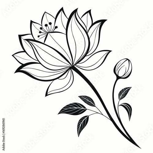 Minimalist black and white lotus flower silhouette design