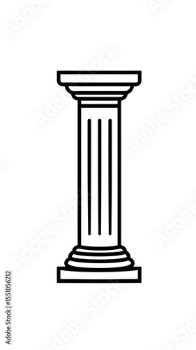 Minimalist black and white outline of classical Roman column with fluted shaft and simple base and capital in vector style