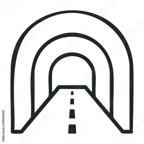 Minimalist black and white road tunnel icon with arched structure. Vector illustration