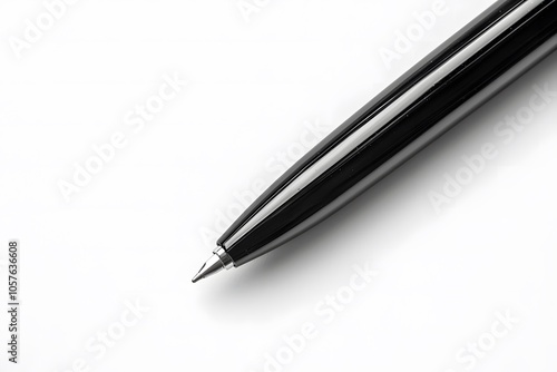Minimalist black ballpoint pen with a sleek design, isolated on a white background