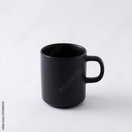 Minimalist black ceramic coffee mug on a plain white background