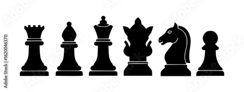 Minimalist Black Chess Piece Silhouettes Representing Strategy, Game, and Intellectual Challenge in Simple Graphic Forms