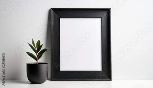 Minimalist Black Frame Mockup against a White Background, Elevating Simplicity and Purity in Digital Art, Perfect for Modern Design Inspiration.
