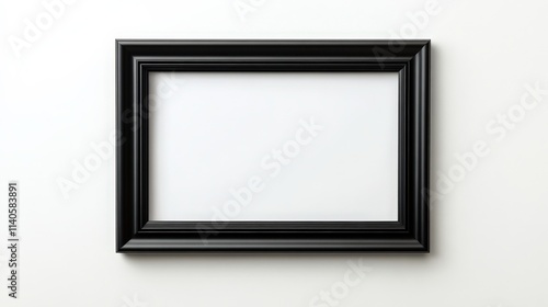 Minimalist black frame on white wall: blank canvas for artistic display and creative projects