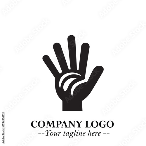 Minimalist Black Hand Logo Symbol on White Background in Clean Modern Silhouette Style