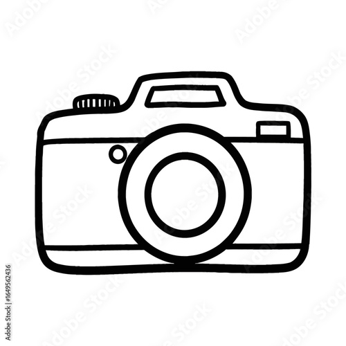 Minimalist Black Line Art Camera Icon.