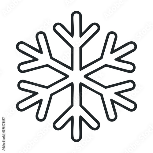 Minimalist black outline snowflake design on transparent background. Vector illustration
