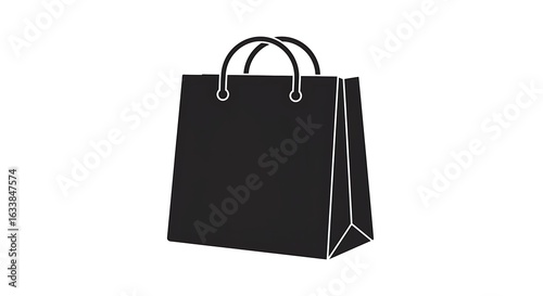 Minimalist black paper shopping bag illustration. A vector graphic symbol representing retail, purchase, and commerce concepts.