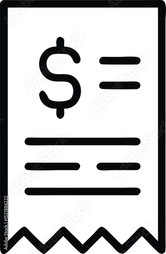 Minimalist black vector illustration of a detailed transaction receipt with money