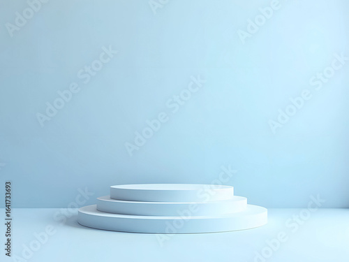 Minimalist Blue 3D Podium with Plants – Modern Product Display Background