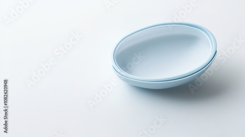 Minimalist blue bowl on white background with space for text