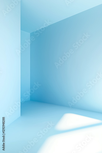Minimalist blue interior room with soft light creating a serene atmosphere.