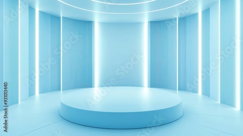 Minimalist Blue Podium with Futuristic Design and Lighting