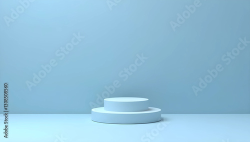 Minimalist Blue Podium with Tiered Platforms for Product Display