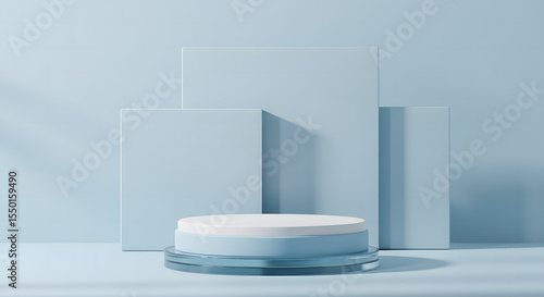 Minimalist Blue Product Display Podium with Rectangular Backdrops for Presentation