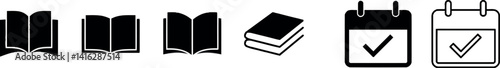 Minimalist Book and Calendar Icons: Black and White Design for Learning, Planning, and Organization Concepts