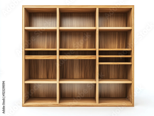 Minimalist bookshelf with adjustable shelves isolated on white background