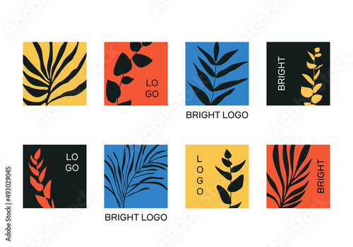 Minimalist botanical plant logo with leaves abstract collage