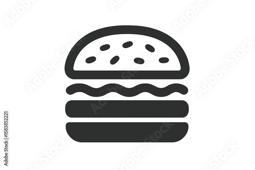 Minimalist Burger Icon Vector, Fast Food Hamburger Symbol, Black and White Flat Design, Modern Restaurant Logo, Simple Snack Emblem, Isolated Sandwich Illustration, Clean Graphic Resource