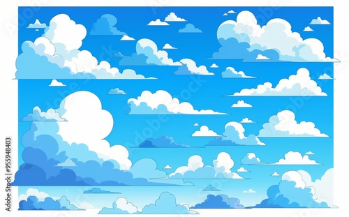 Minimalist Cartoon Sky with White Clouds on a White Background and Copy Space for Text or Graphics
