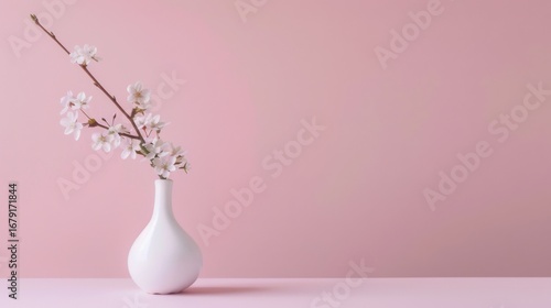 Minimalist Ceramic Vase with Dried Branches Against a White Background