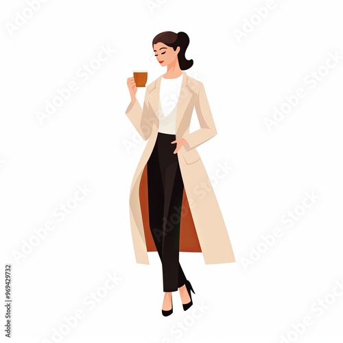 minimalist character with a woman holding a coffee cup