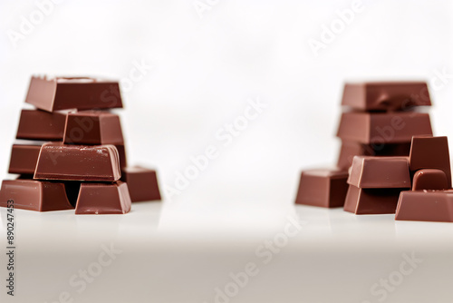 Minimalist Chocolate Bar Stacks on White Surface - Perfect Product Mockup Background for Confectionery and Food Branding Designs