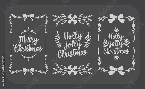 minimalist Christmas card frames, featuring hand-drawn decorative borders with bows, leaves, and swirls, and festive text such as “Merry Christmas” and “Holly Jolly Christmas