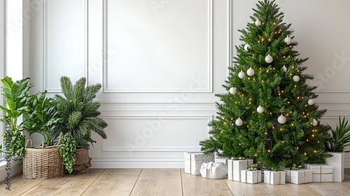 Minimalist Christmas Tree with Gifts in Bright Interior