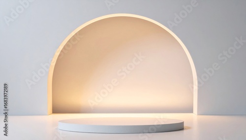 Minimalist Circular Podium Against Archway in Bright Studio Setting for Product Display and Stage
