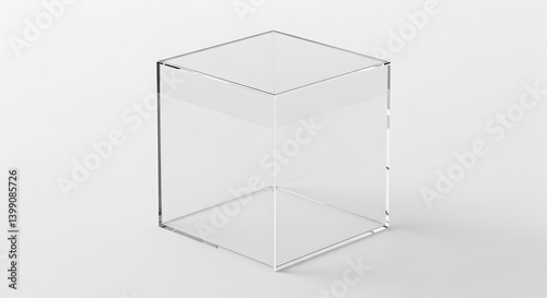 Minimalist Clear Acrylic Cube on White Backdrop in Studio Lighting Setup