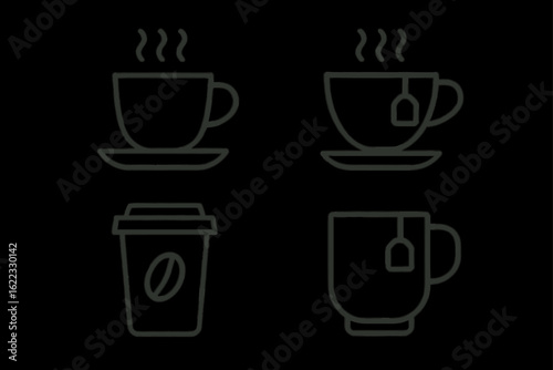 Minimalist coffee and tea cup icons in simple line art style
