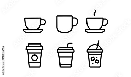 Minimalist coffee cup icons: classic, modern, and takeaway designs