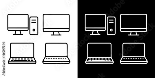Minimalist Computer Line Art Icon Set – Desktop, Laptop, Monitor, Keyboard