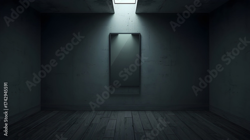 Minimalist Concrete Room with Skylight and Reflective Wall Panel