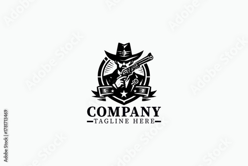Minimalist Cowboy Gun Shooter Vector Logo – Black Silhouette of Western Cowboy Aiming Handgun in Dynamic Action Pose, Simple Bold 2D Design for Mascot, Branding, Wild West Illustration, and Rodeo Gunf