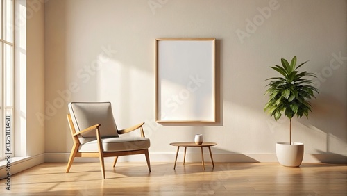 Minimalist Cozy Interior Design: Blank Poster Frame & Stylish Chair Photography