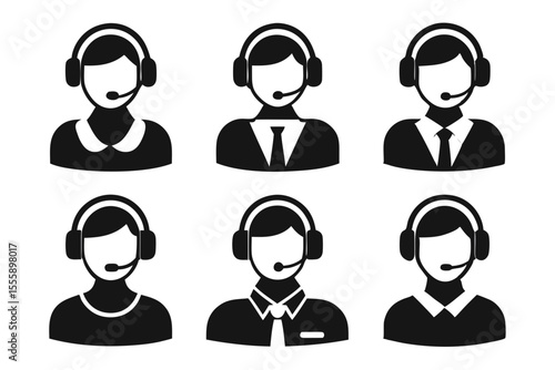 Minimalist Customer Service Agent Icons with Headphones in Black