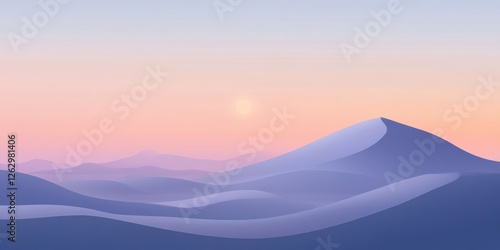 Minimalist Desert Landscape with Sun and Blue Dunes at Sunset