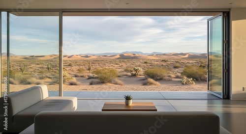 Minimalist Desert Living: An Open Concept Home Design Merging Interior Comfort and arid Landscape views showcasing