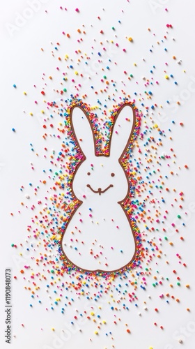 Minimalist Design Featuring Chocolate Bunny Surrounded by Colorful Sprinkles for Easter Celebration with Festive Vibes