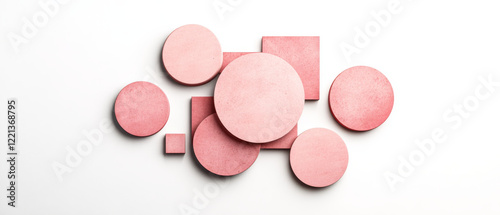 Minimalist design featuring pink geometric shapes on white background