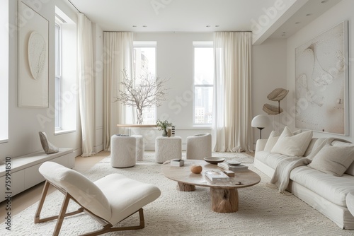 Minimalist design in living room, where clean, uncluttered spaces and thoughtful furnishings