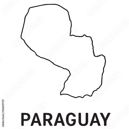 Minimalist design of Paraguay’s map in black and white with bold black outline, ideal for elegant geographic visuals, travel content, or data presentations.