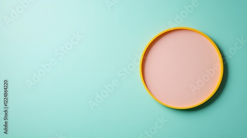Minimalist Design of Yellow and Pink Round Plate on Soft Teal Background for Creative Presentation