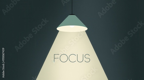 Minimalist design with lamp shining light on FOCUS in bold capital letters