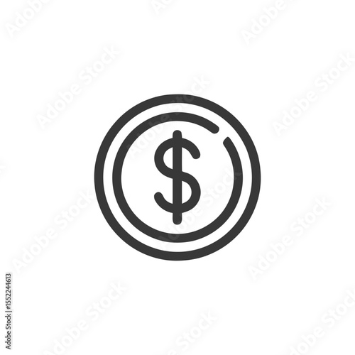 Minimalist Dollar Coin Icon: Bold Outline Design on White Background