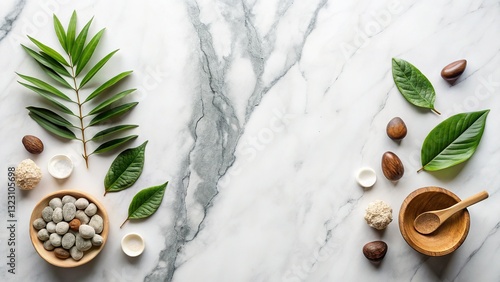 Minimalist Earth Day Flat Lay: Organic Elements on Marble